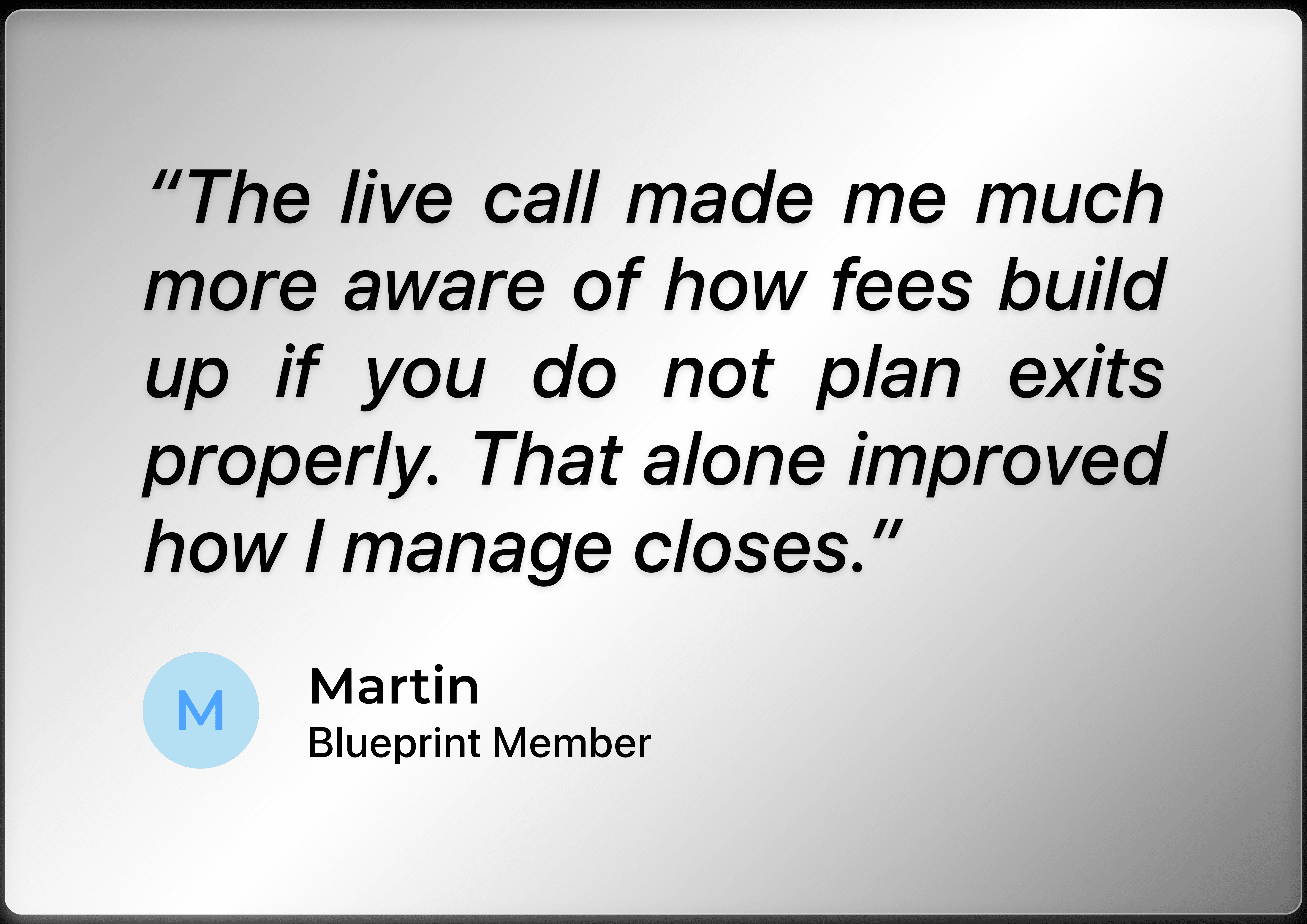 Complete roadmap from A to Z. Daily community accountability. Weekly reviews. Real feedback loops that catch mistakes before they cost you. The system is already built so you just execute it.