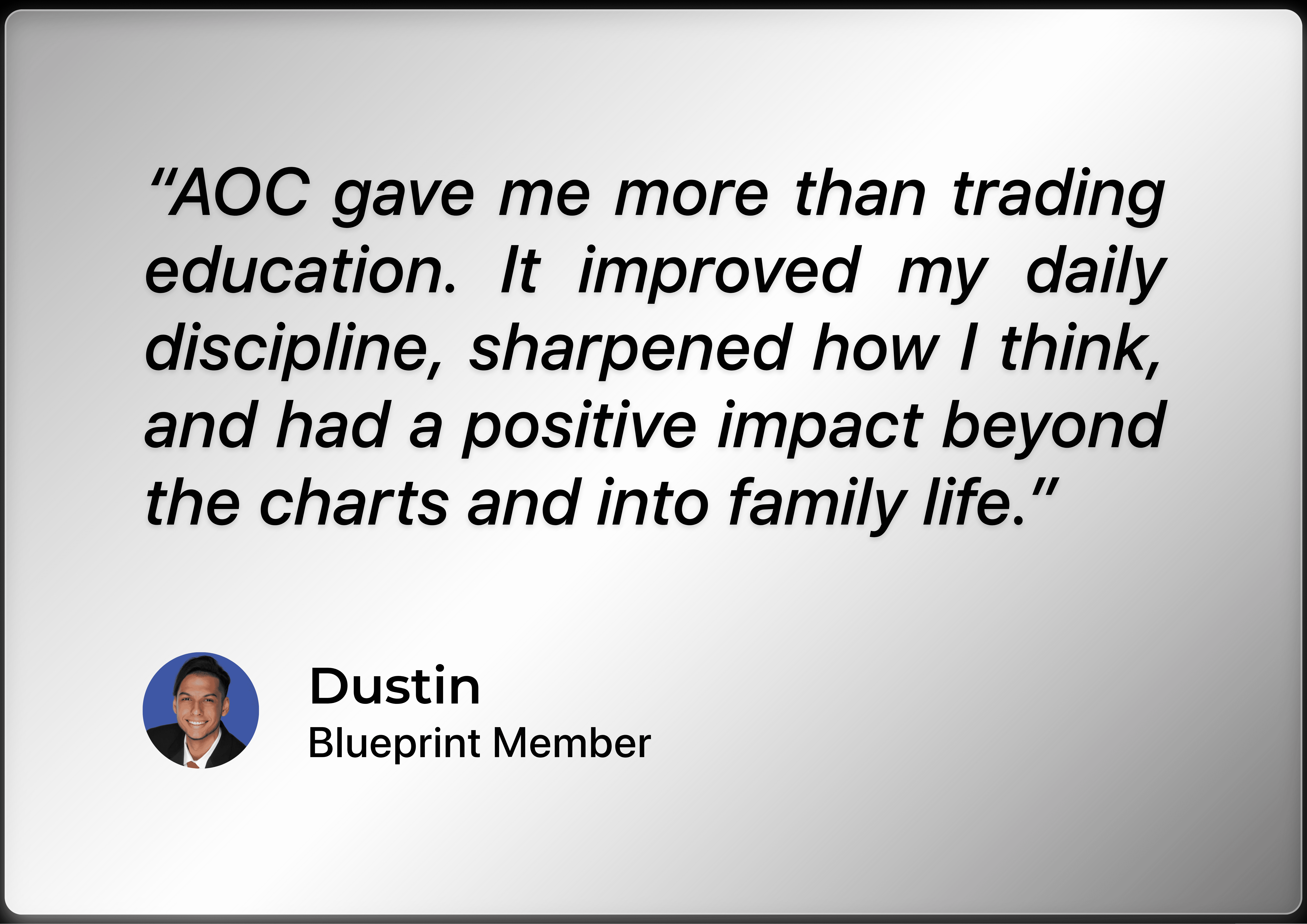 The AOC Blueprint is a structured online training programme that teaches you my full trading system step-by-step.
